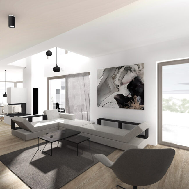 The Belin House will offer eight unique apartments. Apartments are spacious, bright and offer a contemporary design. Large window surfaces and external areas give a unique sense of openness and airiness. Living areas are open and connected, expanding out to spacious terraces. The ceilings are extra high – up to 2.85 m. Ground floor apartments are three and four bedroom single-floor apartments. Apartments on the first and the second floor are three, four and five bedroom double-floor apartments. The double-floor apartments also include two-level galleries and fireplaces. All apartment terraces are furnished with outdoor kitchens and pergolas which allow shading and offer protection from rain. Residents are able to park in the basement of the facility, where there are two parking spaces designated for each apartment and fitted with charging units for charging electric cars, a private storage area and a storage option for bicycles.