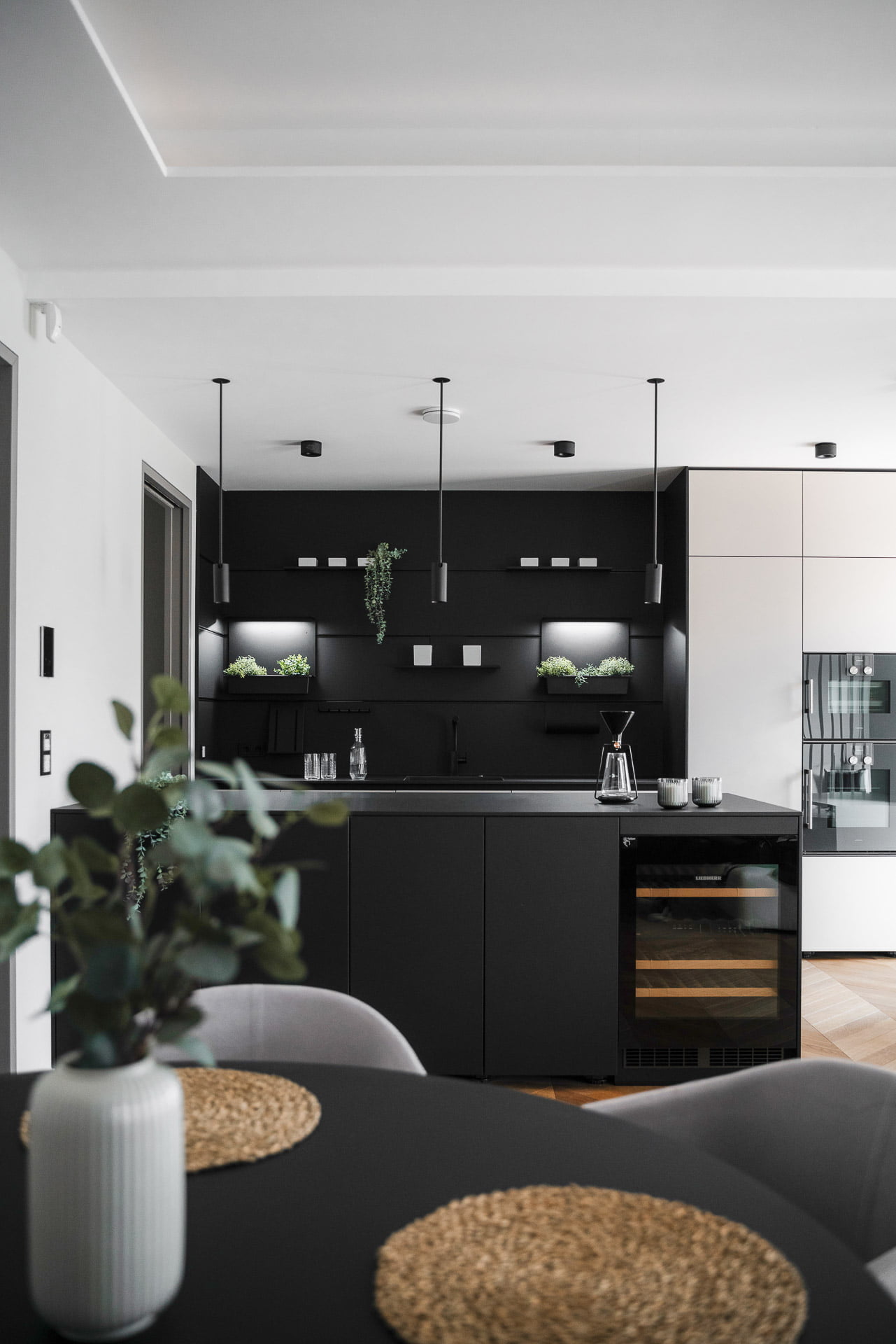 is a three-bedroom ground floor apartment with a north-west orientation. The apartment includes a spacious living area with contemporary design including a kitchen with an island, bedroom, two spare rooms, utility area, bathroom and a separate toilet. The bedroom has a separate wardrobe area. A spacious terrace surrounds the apartment on the north and the west side and can be accessed through the living and sleeping areas. The terrace is enclosed and elevated above the level of the surrounding terrain. There is a storage area and two private parking spaces designated to the apartment in the basement.